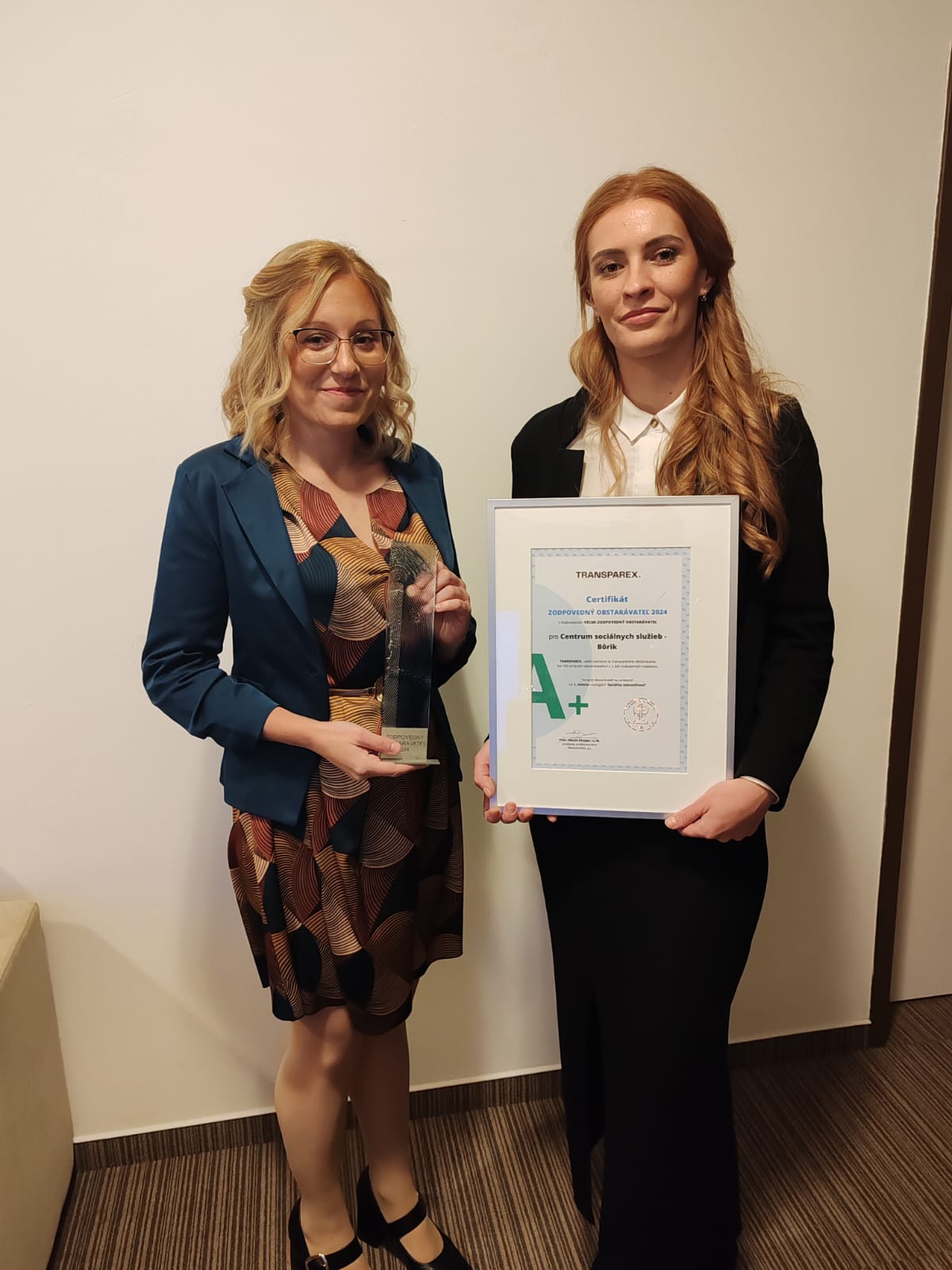 S radosťou oznamujeme, že naše zariadenie Centrum sociálnych služieb - Bôrik získalo 1. miesto v kategórii Sociálna starostlivosť v hodnotení spoločnosti Transparex. Ocenenie bolo udelené za transparentné hospodárenie, zodpovedný prístup k verejným financiám a kvalitnú starostlivosť poskytovanú našim klientom.
